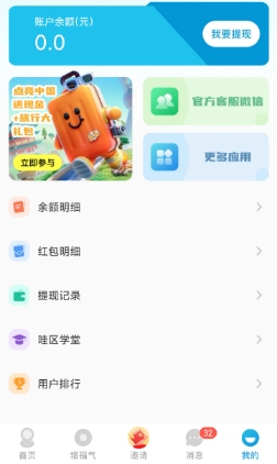 哇区是最近上线的一个软件在里面的话,除了看广告赚钱还可以对各个地区有一些了解,这算是一种比较新的玩法,比如说可以在里面去点亮一些地区,那么可以拿到奖励。这种点亮地区和看广告赚钱结合的方式,我觉得是比较新颖的。